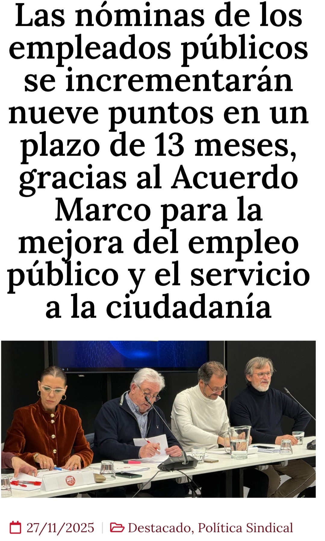 Ver publicación ugt-sp.es/las-nominas-de-los-empleados-publicos-se-incrementaran-nueve-puntos-en-un-plazo-de-13-meses-gracias-al-acuerdo-marco-para-la-mejora-del-empleo-publico-y-el-servicio-a-la-ciudadania/