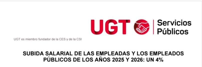 retribuciones en el ámbito del sector público activa el Acuerdo Marco por la Mejora del Empleo Público y el Servicio a la Ciudadanía, firmado por UGT-SP, aplicando la subida salarial prevista para los años 2025 y 2026, lo que va a suponer el abono del año 2025 (2,5%) y la provisión del año 2026 (1,5%, de momento, susceptible de incrementarse con una cláusula variable del 0,5%). En un mes las retribuciones se habrán incrementado el 4%.